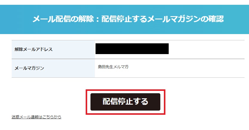 ②停止をご希望されるメールアドレスにお間違いがなければ、「配信停止する」をご選択ください。