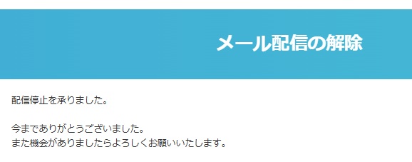 ②「購読を解除しました。ご購読ありがとうございました。」が表示されましたら停止完了となります。