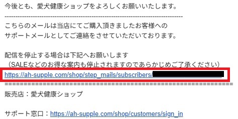 ■愛犬健康ショップからのサポートメール、お得なお知らせなど